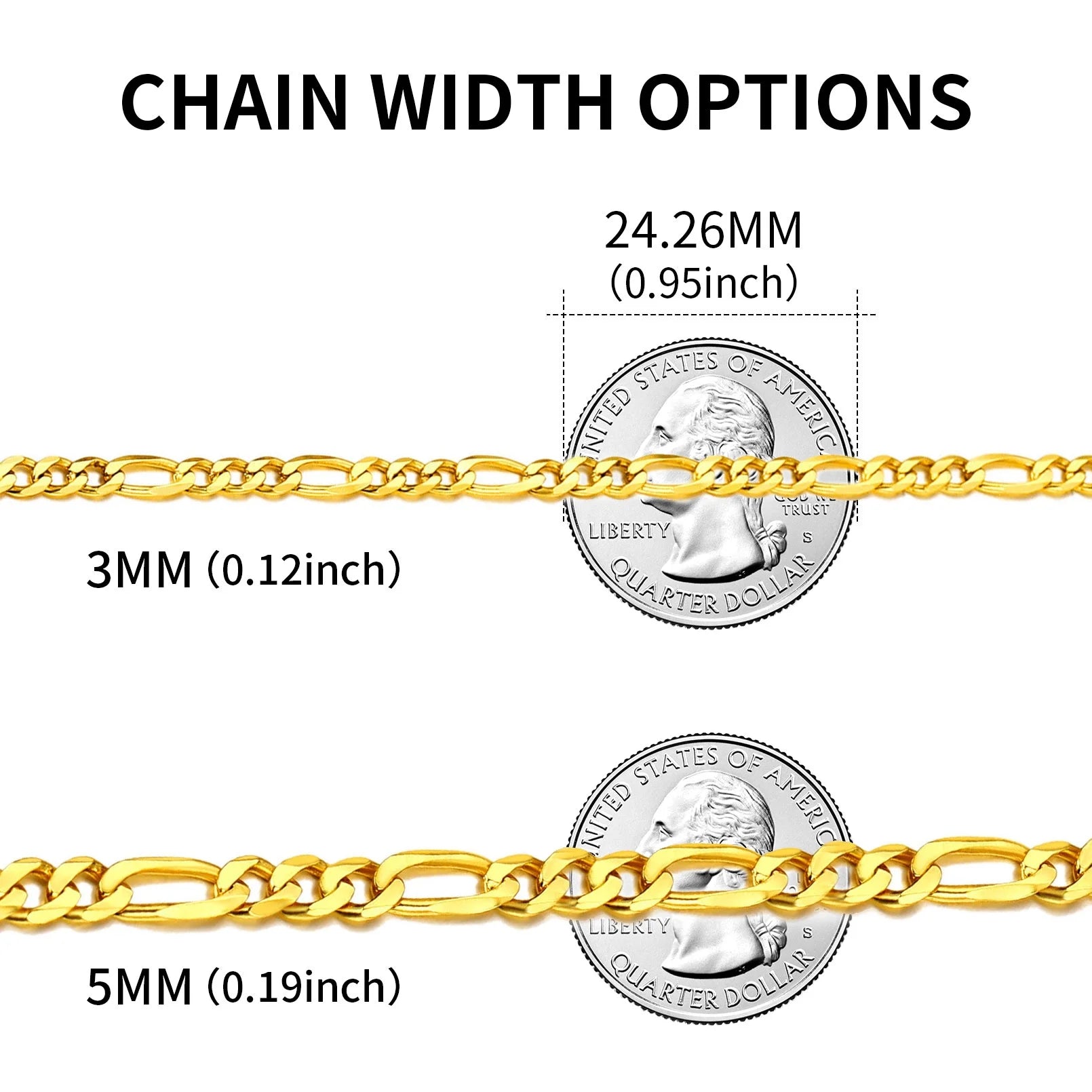 【 MANY CHOICES 】Chain Width Available: 2.8mm/5mm; Chain Length Available: 14, 18, 20, 22, 24, 26, and 28 inches;