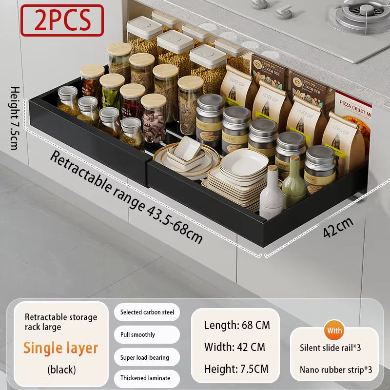 Expandable Pull Out Cabinet Organizer Metal Stick Slide Out Drawers Storage Kitchen Adjustable Sliding Roll Out Cabinet Shelves
